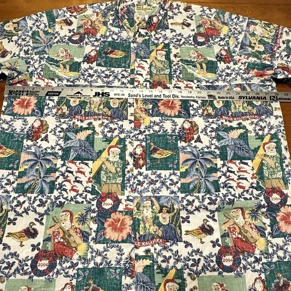 Reyn Spooner Mele Kalikimaka Limited Issue Hawaiian Christmas Button Down Shorth Sleeve Shirt 2004 Size: XXL (see pictures for measurements)60% Cotton, 40% Polyester