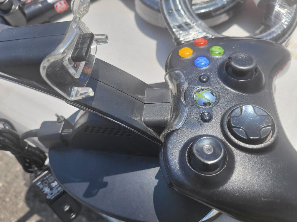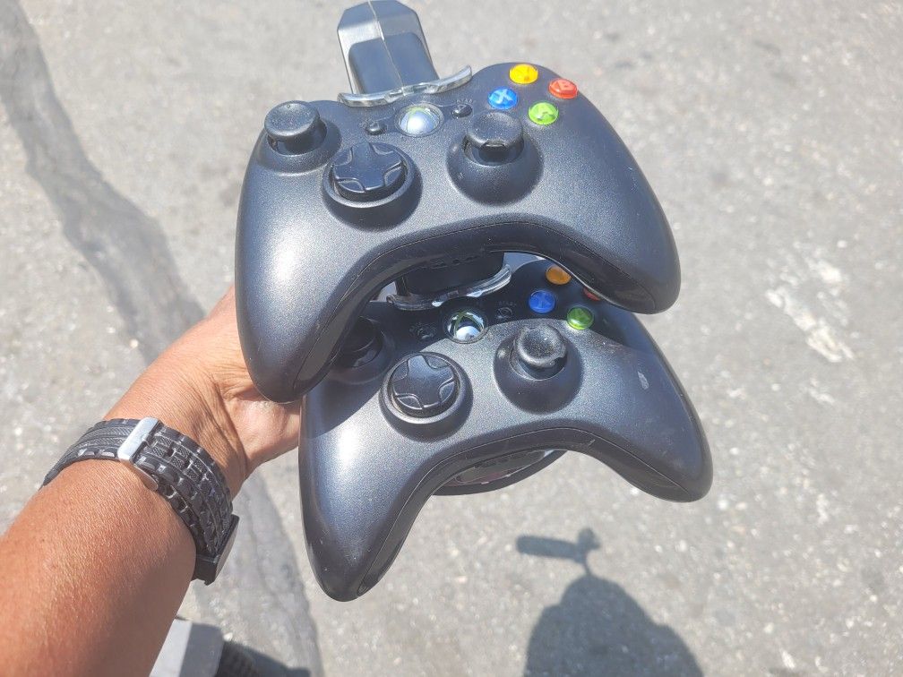 2 XBOX 360 REMOTE CONTROLLER MICROSOFT ORIGINAL BLACK WITH RECHARGEABLE BATTERY AN CHARGER BASE